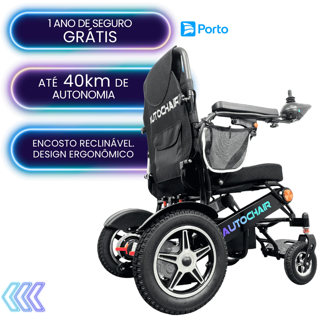 Nossas cadeiras de rodas oferecem até 40 km de autonomia, combinadas com design leve e compacto para máxima mobilidade.